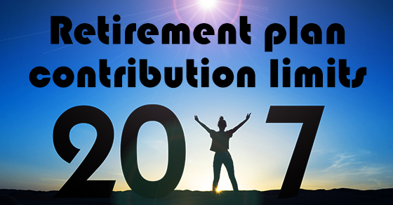 Retirement plan contribution limits are indexed for inflation, but with inflation remaining low, most of the limits remain unchanged for 2017. The only limit that has increased from the 2016 level is for contributions to defined contribution plans, which has gone up by $1,000.